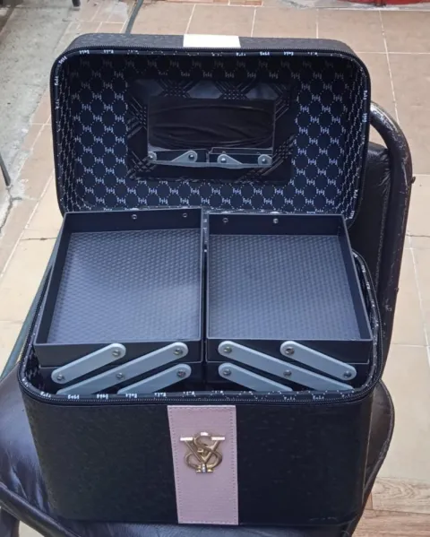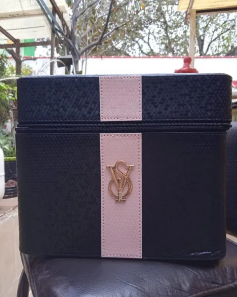 Cosmetiquera amplia, cuenta con cierres. Espejo dentro. Color negro. Mantiene su forma. Medidas 22*26*16 cm.