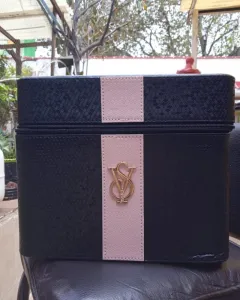 Cosmetiquera rectangular negra. Cosmetiquera amplia, cuenta con cierres. Espejo dentro. Color negro. Mantiene su forma. Medidas 22*26*16 cm.