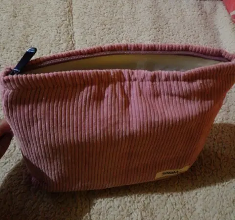 🤑Cosmetiquera Rosa 🤑. 🛍️Hermosa Cosmetiquera Rosa Para Este Regreso a Clases De Pana Con Forro como de lona realmente muy buena Calidad, tiene cierre medidas aprox. 19cm largo ancho de 25.5 cm muy buen tamaño se manda detallito en la compra 🤩