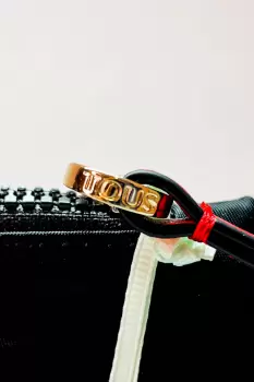 Nuevo neceser TOUS. Neceser plano Tous de nylon en color negro con fondo en rojo.Cierre con cremallera.Medidas: 21,5 x 12,5 x 1 cm.Lo envío con cubrepolvo y bolsa de papel de la marca.
