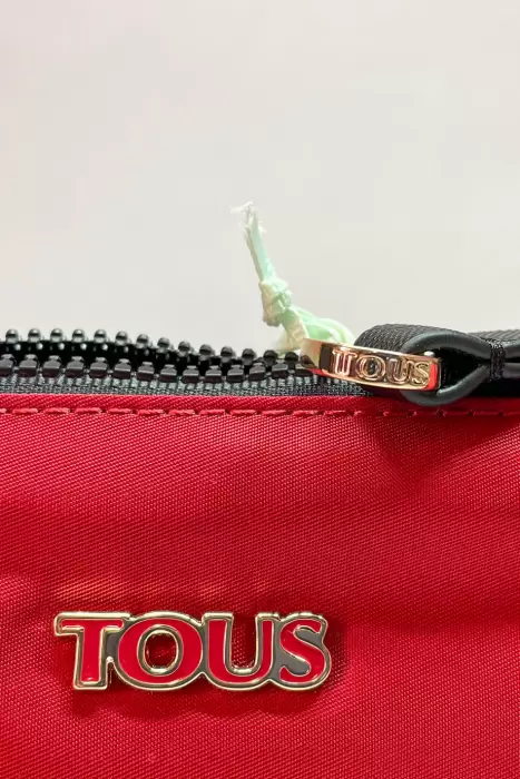 Neceser plano Tous de nylon en color rojo con fondo en negro.Cierre con cremallera.Medidas: 21,5 x 12,5 x 1 cm.Lo envío con cubrepolvo y bolsa de papel de la marca.