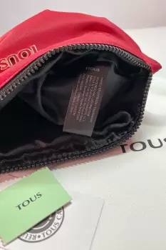 Nuevo neceser TOUS. Neceser plano Tous de nylon en color rojo con fondo en negro.Cierre con cremallera.Medidas: 21,5 x 12,5 x 1 cm.Lo envío con cubrepolvo y bolsa de papel de la marca.