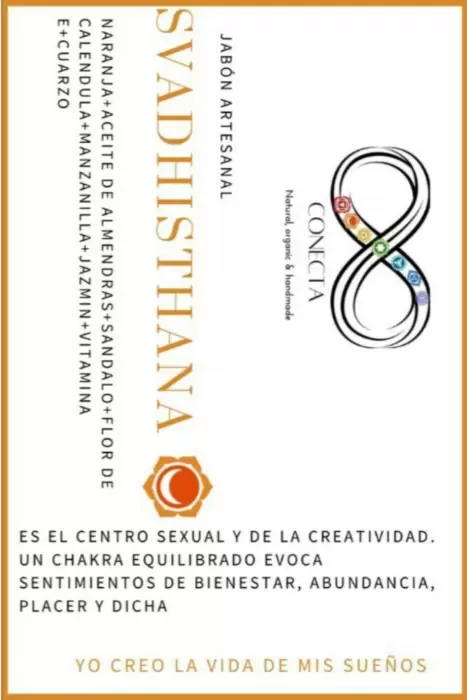 Jabón: Chakra Svadhisthana ó SexualSon jabones artesanales elaborados con la intención de equilibrar tus chakras mientras te consientes en la ducha cuidando tu piel, los cuarzos ayudan a equilibrar, limpiar, sanar y activar. Estos están elaborados de plantas medicinales como sábila, lavanda, manzanilla entre otras, además la aromaterapia tiene un sin fin de beneficios.