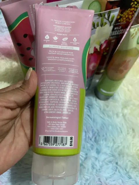 Crema Corporal Bath & Body Works Watermelon Lemonade es un producto hipoalergénico, para todo tipo de piel, te deja un aroma delicioso y deja muy hidratada tu piel, producto original americano. Tengo más aromas.Aprovecha para tus regalos decembrinos.Cualquier duda quedo a la orden.