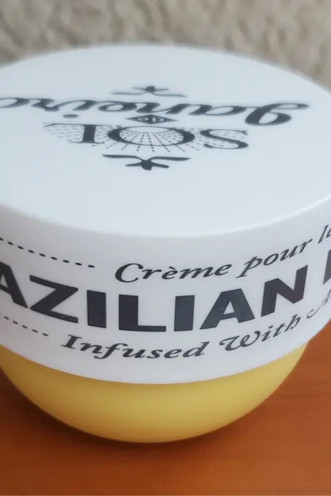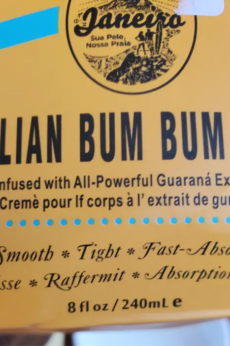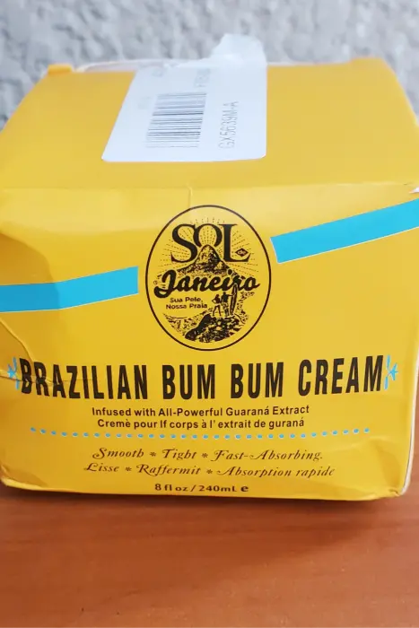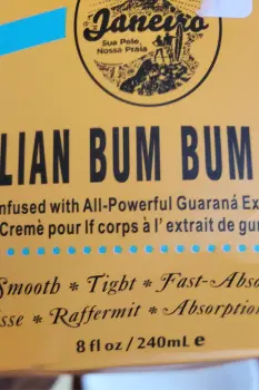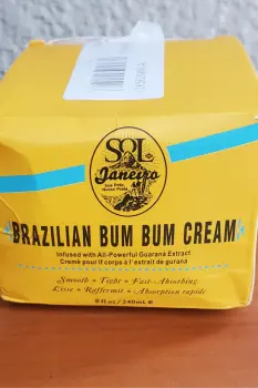 Crema Sol de Janeiro Brazilian Bum Bum. Suaviza y tensa: crema corporal de rápida absorción para tu trasero, piernas, abdomen y todo el mundo contiene guaraná para apretar y suavizar la apariencia de la piel.Hidrata y suaviza: mezcla de belleza brasileña de mantequilla de Cupuaçu, aceite de azaí y aceite de coco se suaviza mientras que un brillo de mica ligero crea un brillo maravilloso que resalta en todo el mundo.Deliciosa fragancia: crema de loción corporal perfumada con pistacho y caramelo salado. No pegajoso y no graso.Formulado sin: libre de crueldad, vegano, sin gluten, sin soja, sin parabenos, sin colorantes artificiales, sin 5, sin ftalatos, sin parabenos, sin clavijas, sin talco, sin sulfatos, sin aceite mineral, sin nueces.240 ml . La caja esta maltratada.