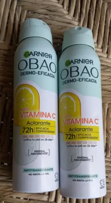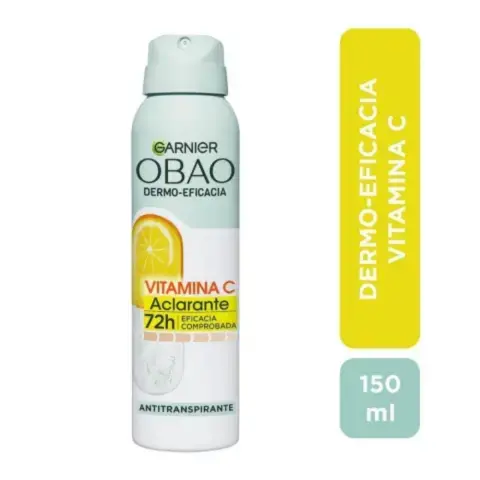 Desodorante aerosole. 2 x 150 ofertaGarnier obao dermo eficacia antitasparente , por pri.era vez un ANTITRASNPIRANTE con 72hrs eficacia formulado con dermo in ingredientes seleccionado para cada necesidad y cuidado de tu piel, vitamina c no mancha, no alcohol, no irrita la piel.
