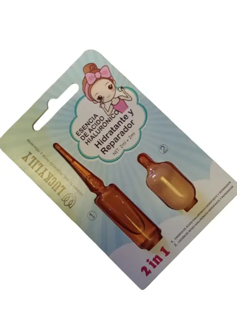 Esencia de ácido hialurónico. ESENCIA Y LOCIÓN DE ÁCIDO HIALURÓNICO HIDRATANTE Y REPARADORCADA PAQUETE CONTIENE 2 PRODUCTOS, 1 ESENCIA Y 1 LOCIÓN.1. SOBRE LA ESENCIA:La textura es fresca y ligera, que puede ser absorbida por la piel al instante. Hace que la piel sea más suave, humectada y brillante, preparándola para absorber los productos de seguimiento para el cuidado de la piel. Contiene ingredientes de alta hidratación como el ácido hialurónico, extracto de trufa de taladro negro, etc. Está diseñado para varios tipos de piel seca, lo que hace que los nutrientes hidratantes lleguen directamente a la piel y acondiciona la humedad y la piel traslúcida.Uso de la esencia:Después de lavar, tome una cantidad apropiada de esencia en la palma de la mano y aplíquela en la cara, masajeando gentilmente o dando golpecitos hasta que se haya absorbido completamente.2. SOBRE LA LOCÍON:Suaviza y humecta la piel. Las moléculas pequeñas pueden llevar humedad hasta el interior de la piel. La capa interior establece rápidamente un entorno hidratante para la piel, dejándola humectada durante mucho tiempo.Uso de la loción:Después de lavar y aplicar la esencia en la mañana y en la tarde, tome una cantidad apropiada de loción en la pala de la mano y aplíquela en la cara con la punta de los dedos, luego masajee gentilmente a través de la piel de forma uniforme por la cara y el cuello para ayudar en su absorción.PRECAUCIONES:1. Guardar en un lugar fresco y seco, evitando exponer directamente a la luz solar.2. si siente irritación o alguna reacción alérgica durante el uso, suspenda su aplicación inmediatamente y consulte con un médico si es necesario.3. Mantener fuera del alcance de los niños.