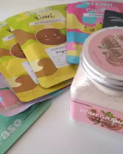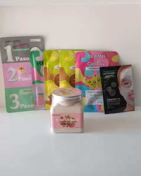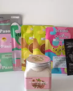 Kit de Limpieza facial que contiene: 🧖🏻* 4 Mascarillas humectantes de Tela * 2 Mascarilla 3 Pasos para Puntos Negros* 1 Mascarillas Facial burbujeante de Carbón Activado.* 1 Tarro de Exfoliante Facial-Corporal de Granada(con gránulos para una eficaz exfoliación) además de que deja un delicioso aroma en la piel 😍