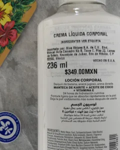 Loción corporal Belize Tropical Cabana. Crema Corporal ultraenriquecida de Karité. 24 horas de hidratación nutritiva. Deja la piel suave. Déjate consentir con daiquiri de banana, ananá jugoso y arena dorada. Hecho en USA. 226 ML. Más barato que en la tienda 😉