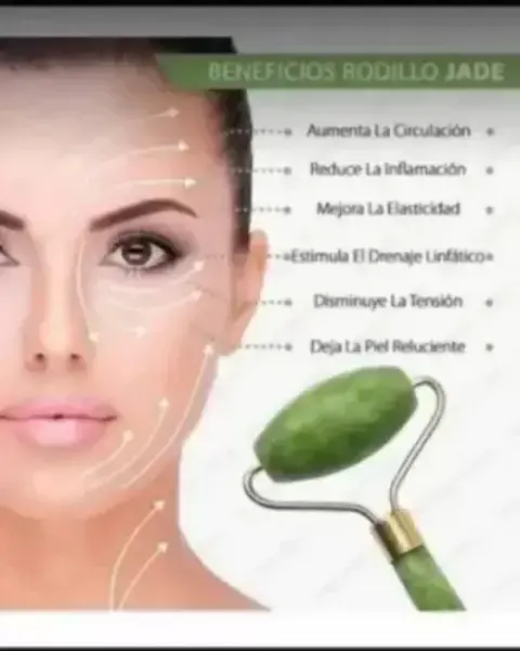 Masajeador para cara, cuello, brazos.Materia de piedra jade y Acabados en metal.Excelente exfoliador y productor de colágeno natural.Producto de cuidado personal de importacion.EN LA COMPRA DE 2 LLEVATE GRATIS EL TERCERO.
