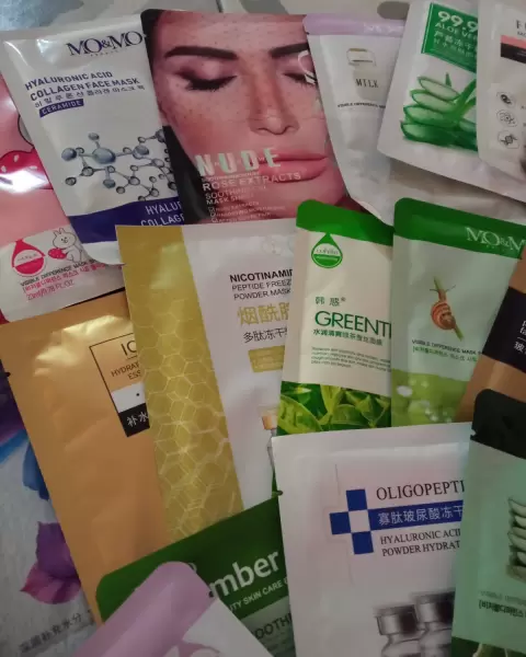 Gran variedad de mascarillas: aloe vera. milk, extracto de rosas, oligopeptides, leche de camello, greentea, nicotinamide, ácido hialurónico, colágeno, baba de caracol, reparadoras, aclaradoras 10 mascarillas a escoger por 150 pesos. 20 por 250. 40 por 400.