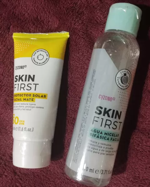 PROTECTOR SOLAR Y AGUA MICELAR. ¡Protege tu piel del sol! Con el nuevo Bloqueador Facial SPF 50 de Skin First, le ofreces una máxima protección a tu rostro sin arruinar tu look. El bloqueador solar tiene una sensación cero grasosa y funciona para todo tipo de piel, incluso sensibles y con granitos. 50 ml.