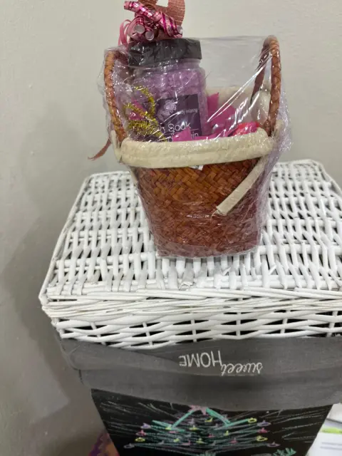 Sales de baño. Canasta de mimbre, color café, talla ECH, Burbujas efervescentes para tina, burbujas efervescentes (Bath & Body Works)