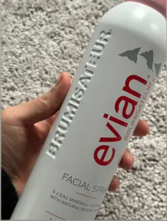 Spray hidratante facial EVIAN. Spray hidratante facial de la marca Evian, ideal para refrescar tu rostro incluso sobre el maquillaje. Presentación de 300 ml.