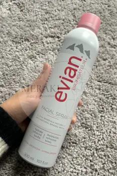Spray hidratante facial de la marca Evian, ideal para refrescar tu rostro incluso sobre el maquillaje. Presentación de 300 ml.