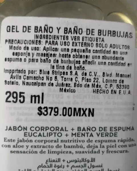 Jabón corporal más baño de espuma de eucalipto y menta verde. Deja la piel con sensación de limpieza, suavidad y frescura. Es lo máximo. Hecho en USA. 295 ML. Más barato que en la tienda 😉⚜️🥛