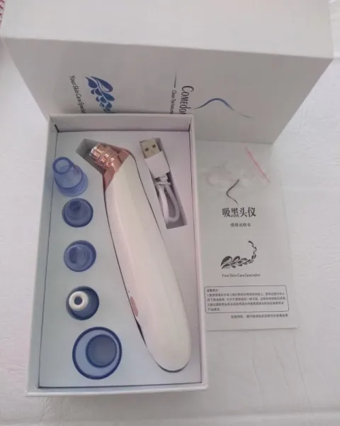 Succionador y limpieza de poros. Comedones your skin care specialist. Cabezal recargable con cable USB cuenta con 3 potencia de succión, 5 diferentes cabezales, trae sus repuestos de gomitas y esponjas. Nunca usado.