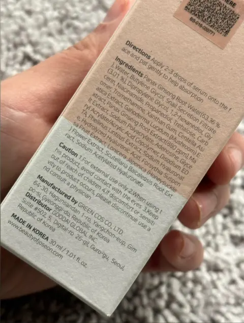 Suero facial BEAUTY OF JOSEON. Suero facial de la marca coreana Beauty of Joseon, con extracto de ginseng y mucina de caracol. Ideal para pieles con falta de brillo y vitalidad. Aplícalo después de tu tónico facial.