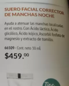 Suero facial corrector de manchas noche. Ayuda a atenuar las manchas localizadas en el rostro.