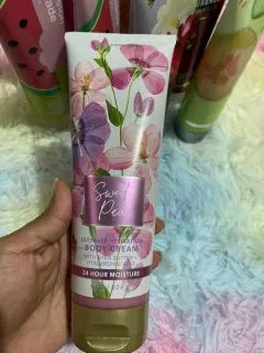 Sweet Pea Crema Corporal. Sweet Pea Crema Corporal Bath & Body Works,, aroma floral, contiene Ácido Hialurónico, te hidrata la piel, no es grasosa y te deja un aroma delicioso. 💯 original americana.Cualquier duda quedo a la orden... mis productos los subo en diferentes plataformas.Algunos paquetes 📦 llega en empaque ♻️reciclado ♻️