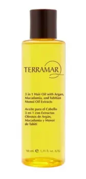 Aceite para cabello Terramar. 😎Aceite para el cabello 3 en 1 con extractos oleosos de Argán❤️🔥, Macadamia👀 y Monoi de Tahití💯✅ Probado dermatólogicamente✅ Perfecto para puntas abiertas y cabello seco✅ Te deja el cabello suave y sin friz Contenido 98 ml‼️Envío al siguiente día hábil 🆗‼️