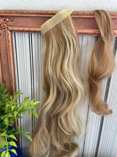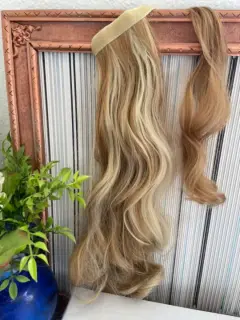 Extensión chongo Cola de caballo Color rubio Largo 45 cm Material sintético Cómoda FrescaLarga Rubia