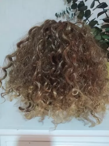 Peluca sintética. Hermosa peluca de pelo rizadobayalage, corte medio. NO es pelo natural, ideal para este carnaval.