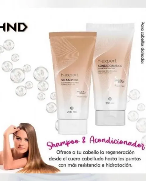 Shampoo y acondicionador H-expert, cabello dañado.. Tecnología HydraScalp combinada con ingredientes potentes para ofrecer más resistencia y fuerza para el cabello dañado, proporcionando regeneración al cuero cabelludo e hidratación profunda desde la raíz hasta las puntas.