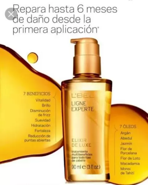 Ligne Expert de L'BEL, tratamiento multibeneficios para todo tipo de cabello, con 7 oleos de elixir de luxe que ayudan a fortalecer el cabello con vitaminas y minerales, devolviendole la vitalidad.