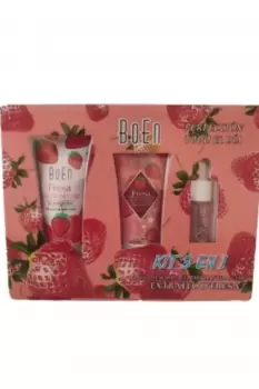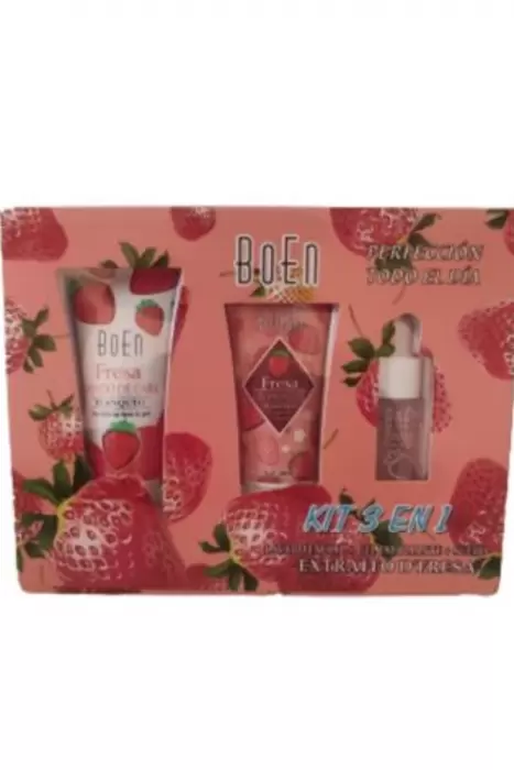 BOEN Kit 3 en 1 Limpieza Facial. Disfruta de tu limpieza facial con este relajante aroma a fresa :1,. Limpiador facial de fresa: Los extractos de fresa ayudan a controlar el exceso de grasa, previene y controlan la acumulacion de bacterias que causan espinillas, tu piel quedara suave, radiante, clara , humeda y fresca.2.- Exfoliante de fresa: Remueve la piel muerta, limpia profundamente tus poros obstruidos.3.- Fresa Suero Hidratante: Proporciona abundante humedad , calma y suaviza tu pielEste producto no es un medicamento, el uso es responsabilidad de el consumidor.
