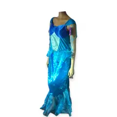 Disfras de Sirena para Halloween. Disfras de Sirena para Halloween, talla chica, color azul cielo y oscuro, cuello de corazon, tirantes de espagueti, acento de escarcha, con tela transparente, hecho con mescla de telas y escarcha, nuevo a estrenar con etiqueta en buen estado cosmetico.