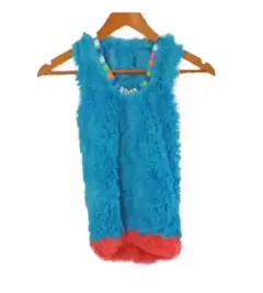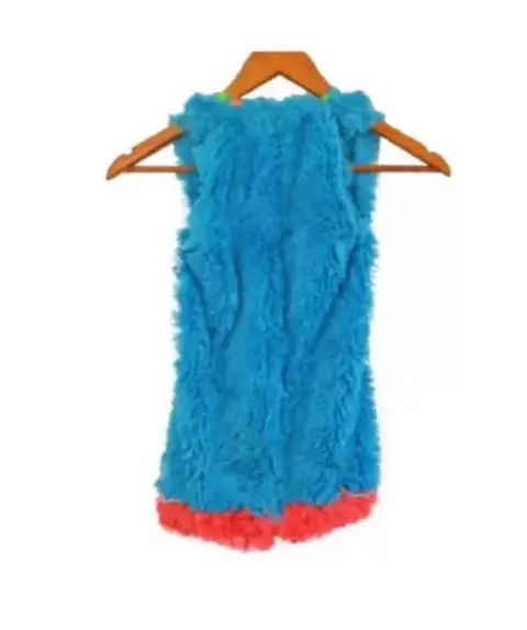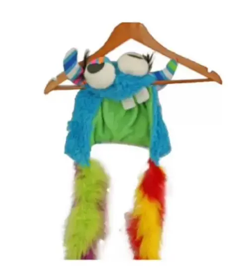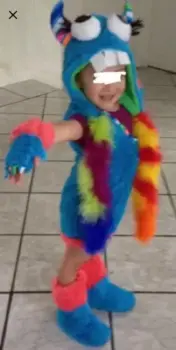 Disfraz monstruo para Niño súper lindo talla 4. Disfraz monstruo lleva vestido azul con rosa y colores en el cuello, trae gorro de cabeza de monstruo con ojos y bufanda, trae tipo guantes con garras y botas de peluche.