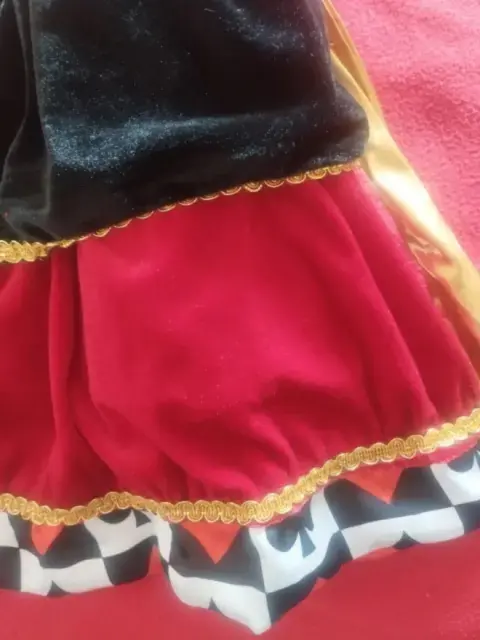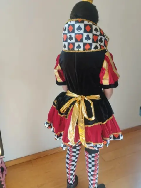 Disfraz de Reina de Corazones para niña talla 12Tela de alta calidad en terciopelo negro y rojo Incluye corona y accesorio para el cuelloNo incluye mallas