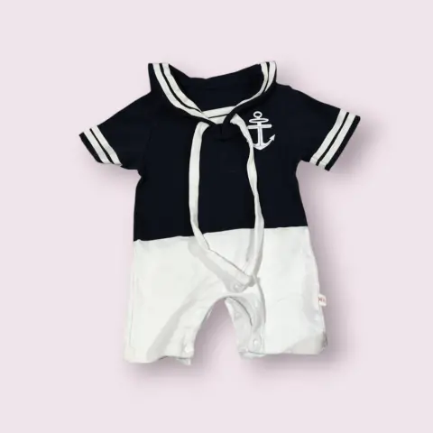 Tierno disfraz de marinero para bebé, usado solo una vez, su estado es nuevo sin etiqueta. La calidad de la tela es buena y gruesa. Perfecto para este halloweenTALLA: 9-12 meses