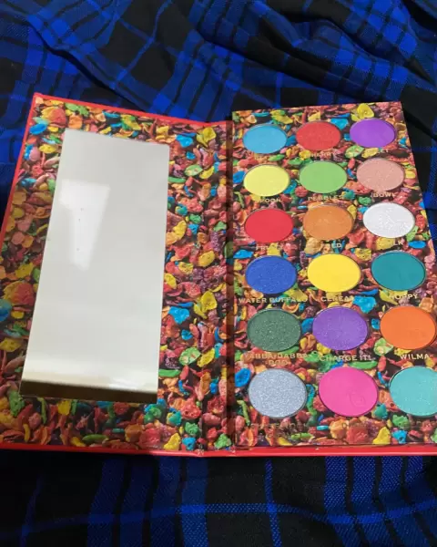 Edición especial fruity pebbles. Hermoso, súper linda paleta de sombras , pigmentación increíble!! Colores preciosos y el iluminador ufff nadie brillará más que tú! 💕🙌🏻🙌🏻