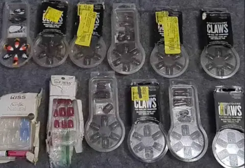 KIT DE UÑAS POSTIZAS. KIT DE UÑAS, IBCLUYE 4 MODELOS, EN TOTAL SON 12 PAQUETES, SON NUEVOS Y LAS CAJAS ESTAN MALTRATADASMODELO GARRA (9)MODELO MURCIÉLAGO (1)MODELO NATURAL (1)MODELO ROJO (1)