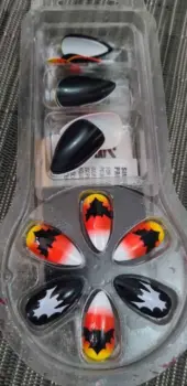 KIT DE UÑAS, IBCLUYE 4 MODELOS, EN TOTAL SON 12 PAQUETES, SON NUEVOS Y LAS CAJAS ESTAN MALTRATADASMODELO GARRA (9)MODELO MURCIÉLAGO (1)MODELO NATURAL (1)MODELO ROJO (1)