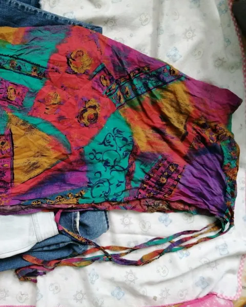 2 faldas de mezclilla largas talla M la clara tiene una manchita tipo salsa =/ en la parte frontal largo 80, falda obscura abierta de ambos lados simula tmb a pantalón largo 100 cm pantalon tipo culotte o pareo tiras ajustables queda desde S-Xl =) valen la pena!!