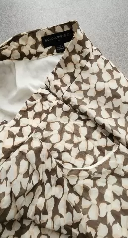 Banana Republic. Talla 4. Banana Republic. Tela y forro de poliester. Bolsas al frente. Corte tulipán. Bolsas al frente.
