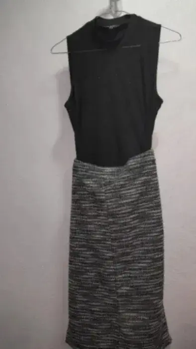Falda lapiz, con pequeña abertura enfrente y cierre atras.Talla chica. Nueva sin desperfectos. Tela suave y un poco estirable y amoldeable. Color negro,blanco,cafe y toques de morado.