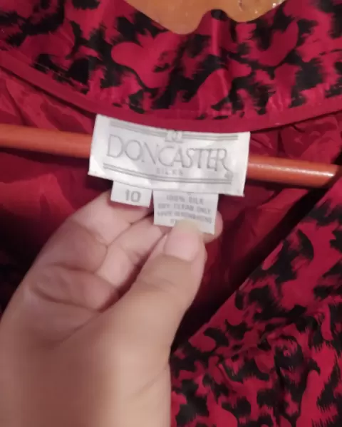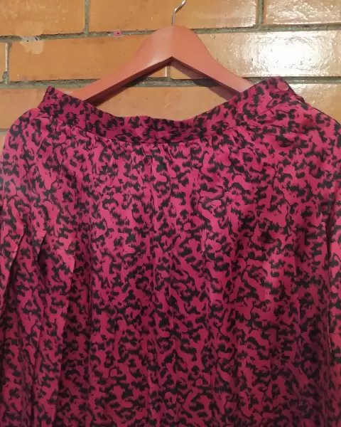 Falda 100% seda Doncaster. Lindísima falda 100% seda, animal print, rojo con negro, cierre y botón lateral.