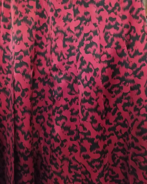 Lindísima falda 100% seda, animal print, rojo con negro, cierre y botón lateral.