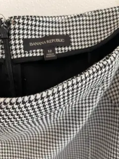 Falda a cuadros. Falda a la rodilla, de cuadros gris con negro, Banana Republic, talla 12, no tiene detalles.