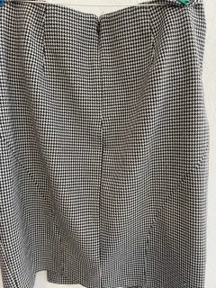 Falda a la rodilla, de cuadros gris con negro, Banana Republic, talla 12, no tiene detalles.