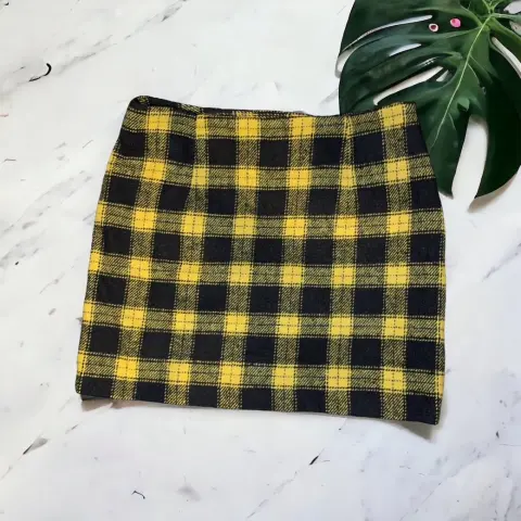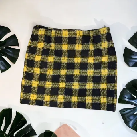 Falda a cuadros de lana. Minifalda en tejido bouclé texturizado con algodón y lana. Modelo entallado con zíper lateral oculto. Forrada. La tela es suave, ligera y cómoda tipo de lana. Ocasión: fin de semana, oficina, vacaciones, fiesta o vida cotidiana.Composición: 39% poliéster, 18% algodón, 15% acrilico, 14% rayon, 7% nylon, 7% lana