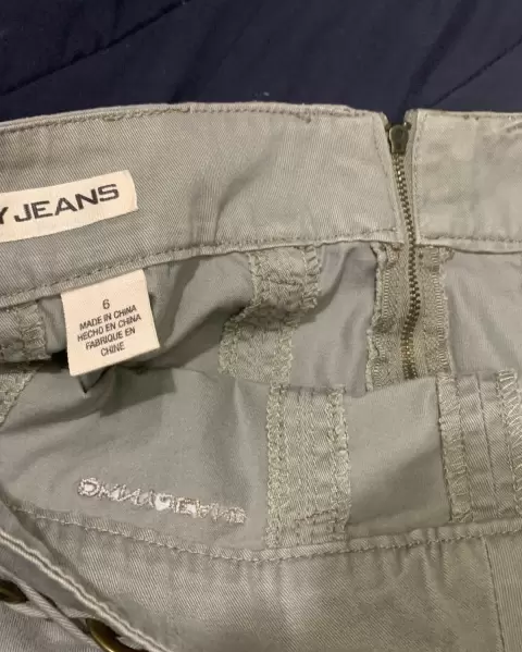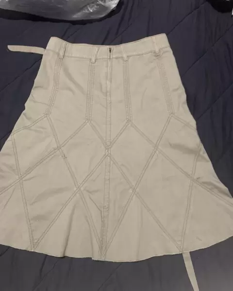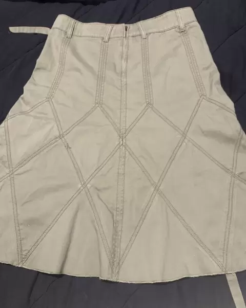 Falda verde militar a la rodilla, talla 6, nueva, con cinturón en aros que le da un toque muy moderno y juvenil, tela cero rígida