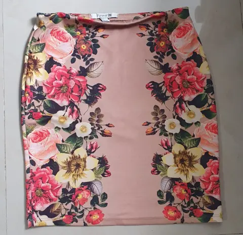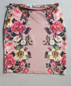 Falda de flores con corte a lápiz.Largo 55 cmAncho 40 cmSe expande.