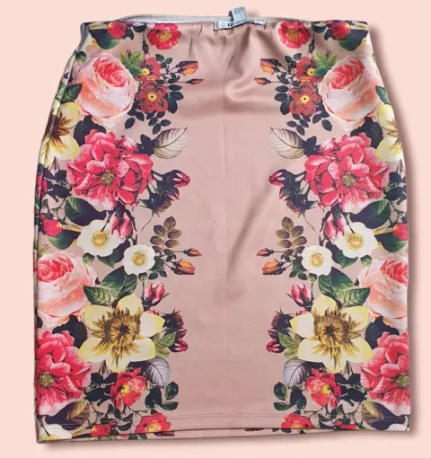 Falda a lápiz de flores. Falda de flores con corte a lápiz.Largo 55 cmAncho 40 cmSe expande.