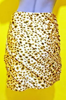 COLOR TRIGO, STRETCH 8% SPANDEX, CIERRE A UN LADO, TALLA CHICA TALLA 4 EQUIVALENTE A UNA TALLA 26, MEDIDAS DE UNA CARA: CINTURA 39 CM, CADERA 46 CM (ESTIRA HASTA LOS 55), LARGO 44 CM.
