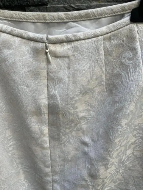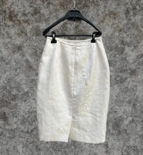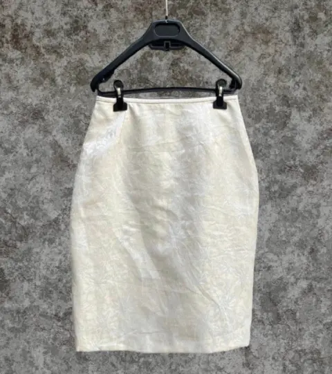 Falda talla 6 color aperlado Medidas: 42 cm de cintura y 58 cm de cadera